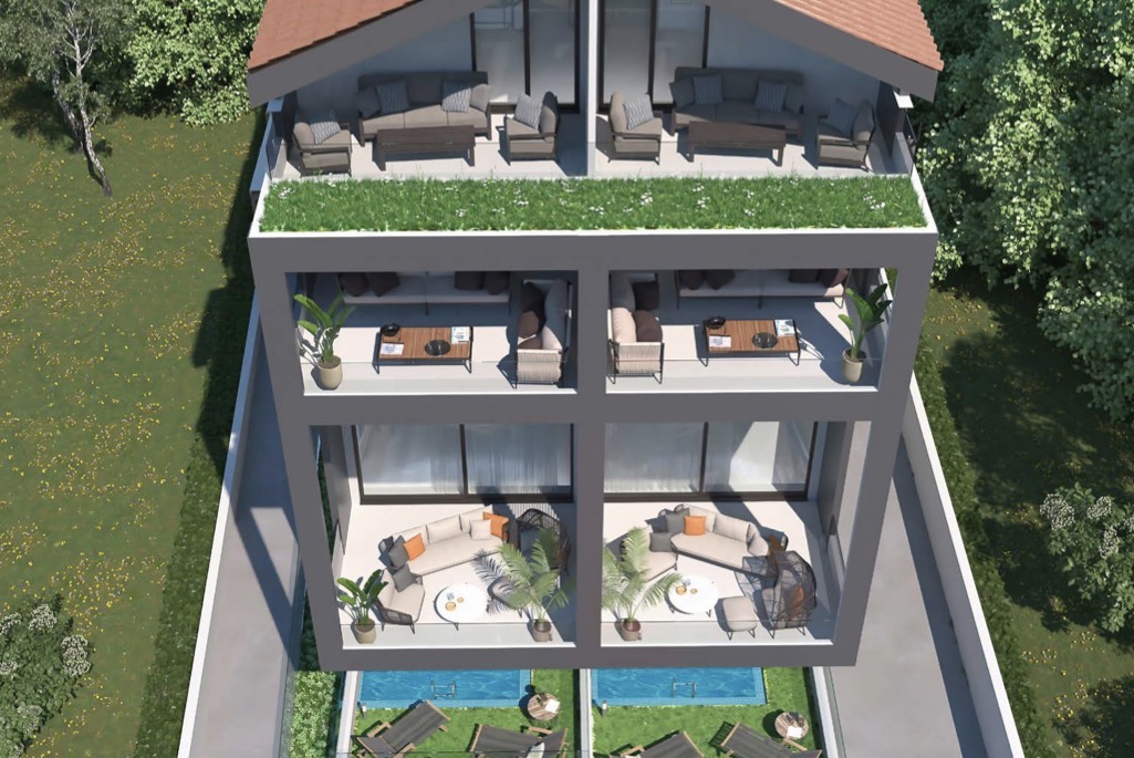 Στον πρώτο όροφο (52 τμ ) υπάρχει το σαλόνι η κουζίνα και το μπάνιο. Στο πατάρι ( 44 τμ )τα δύο υπνοδωμάτια και το μπάνιο. Η παράδοση θα γίνει τον Μάιο του 2027. Τα αλουμίνια είναι ενεργειακά. Το ύψος είναι 6 μέτρα.