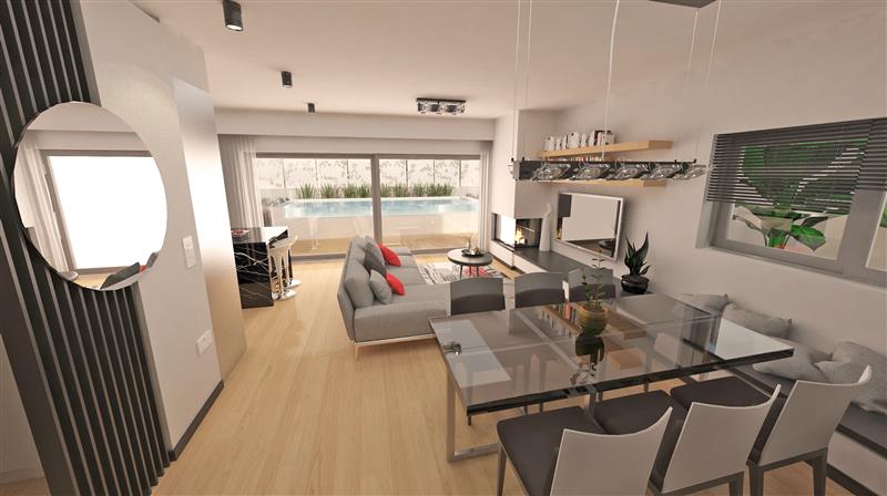 Η μεζονέτα χωρίζεται σε 52 τμ έκαστος. Διαθέτει ενδοδαπέδια θέρμανση, αντλία θερμότητας με ζεστό νερό, πέργκολα, πισίνα 16 τμ και κήπο 150 τμ. Βρίσκεται 150 μ από την παραλία, 230 μέτρα από τη Μαρίνα του Καλαμακίου.